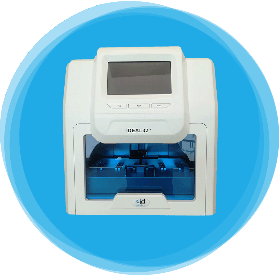 L’IDEAL-32 est un instrument qui effectue une purification entièrement automatisée des acides nucléiques en utilisant des billes magnétiques jusqu’à 32 échantillons de 2 mL, 16 échantillons de 4 mL et 8 échantillons de 8 mL par run. Les étapes automatisées comprennent la lyse des échantillons, la liaison des acides nucléiques aux billes magnétiques, les lavages et l’élution des acides nucléique.