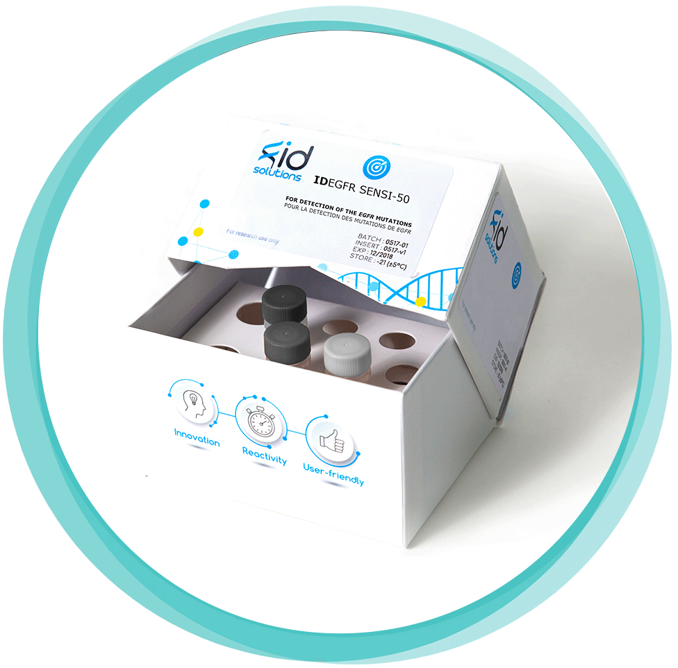 Le kit IDEGFR-SENSI est un test multiplex prêt à l’emploi pour la détection par PCR digitale des mutations activatrices communes (L858R, L861Q et délétions de l’exon 19) du gène l’EGFR (Epidermal Growth Factor Receptor).