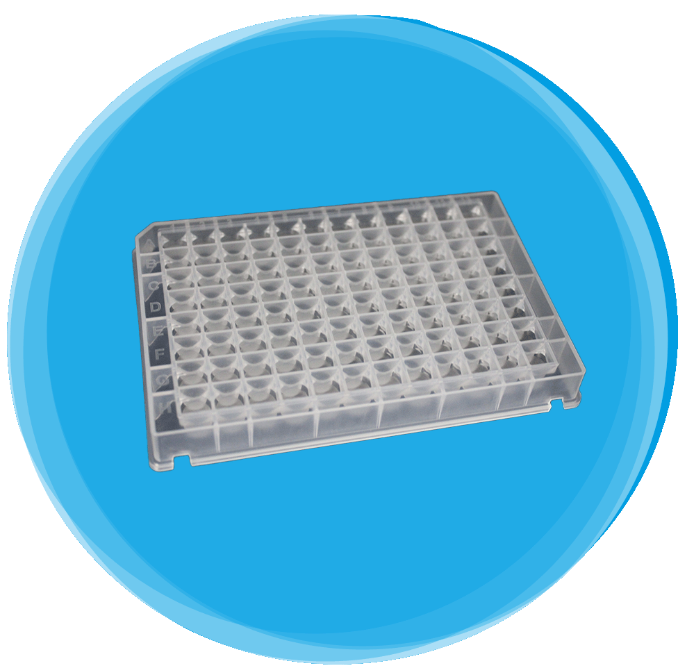IDELU96 est une plaque multi-puits transparente, rectangulaire, en polypropylène (96 puits). Les puits peuvent contenir jusqu’à 200 µl.