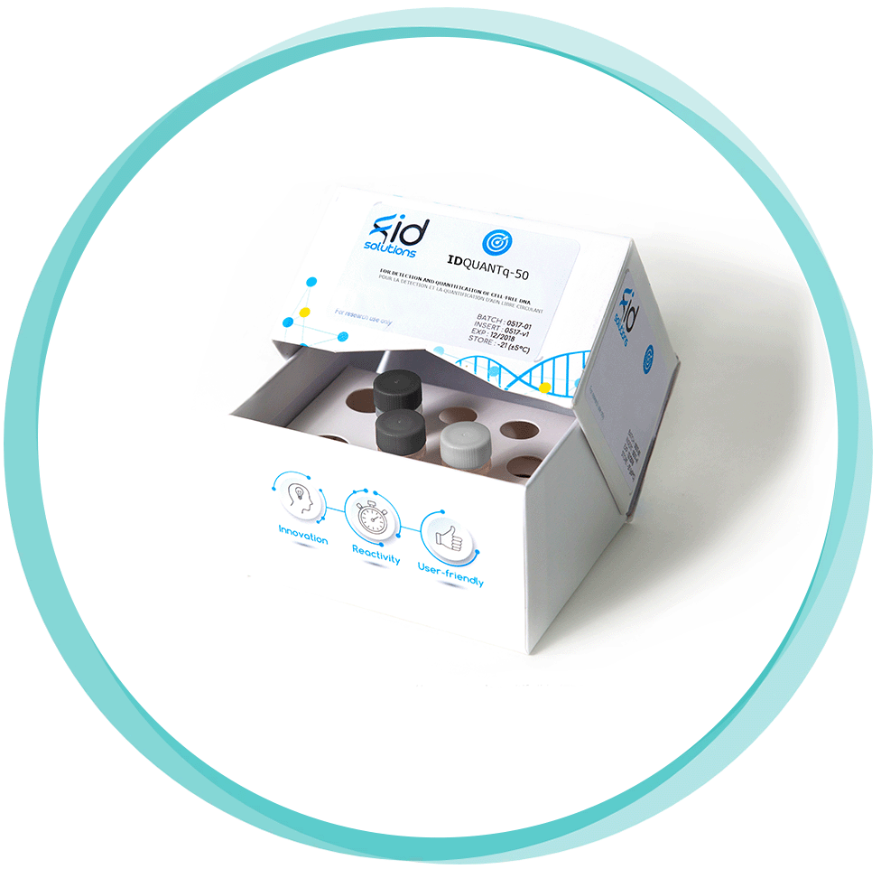 Le kit IDQUANTq est un kit de détection et de quantification relative normalisée par PCR en temps réel, prêt à l’emploi, permettant d’amplifier une séquence cible du génome humain présente à raison d’une copie par génome haploïde.