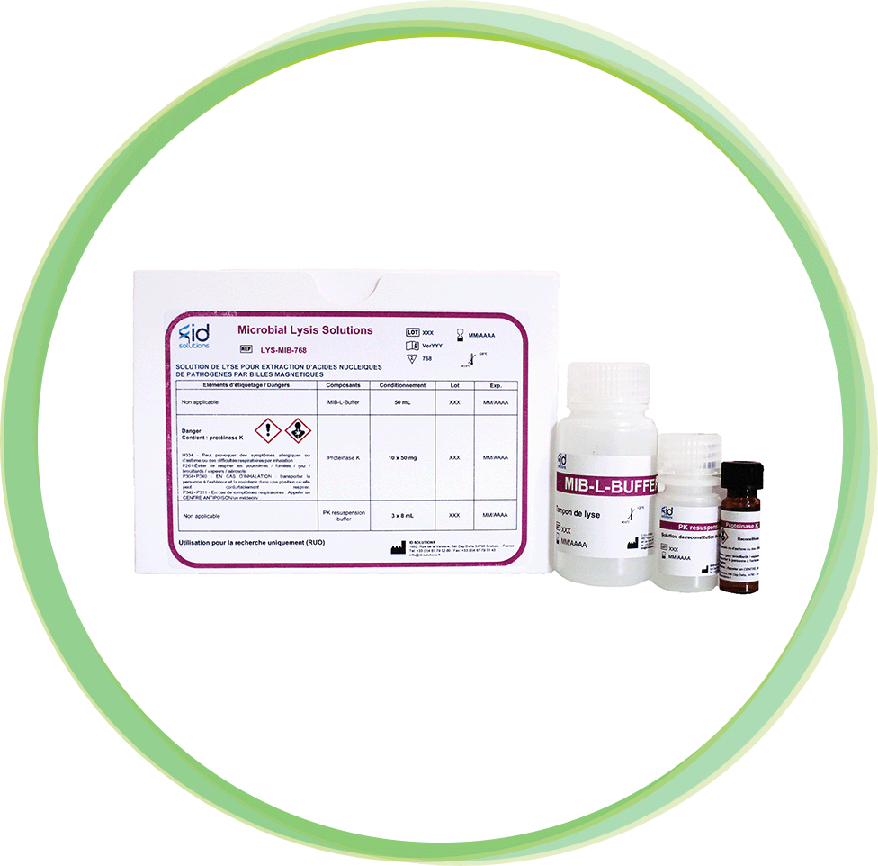 Microbial Lysis Solution (LYS-MIB-768) doit être utilisé en complément du kit d’extraction MAG FAST Extraction Kit (MAGFAST768).